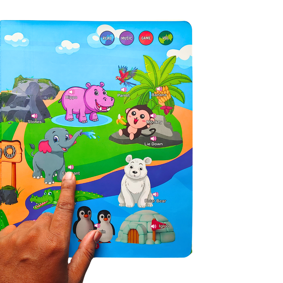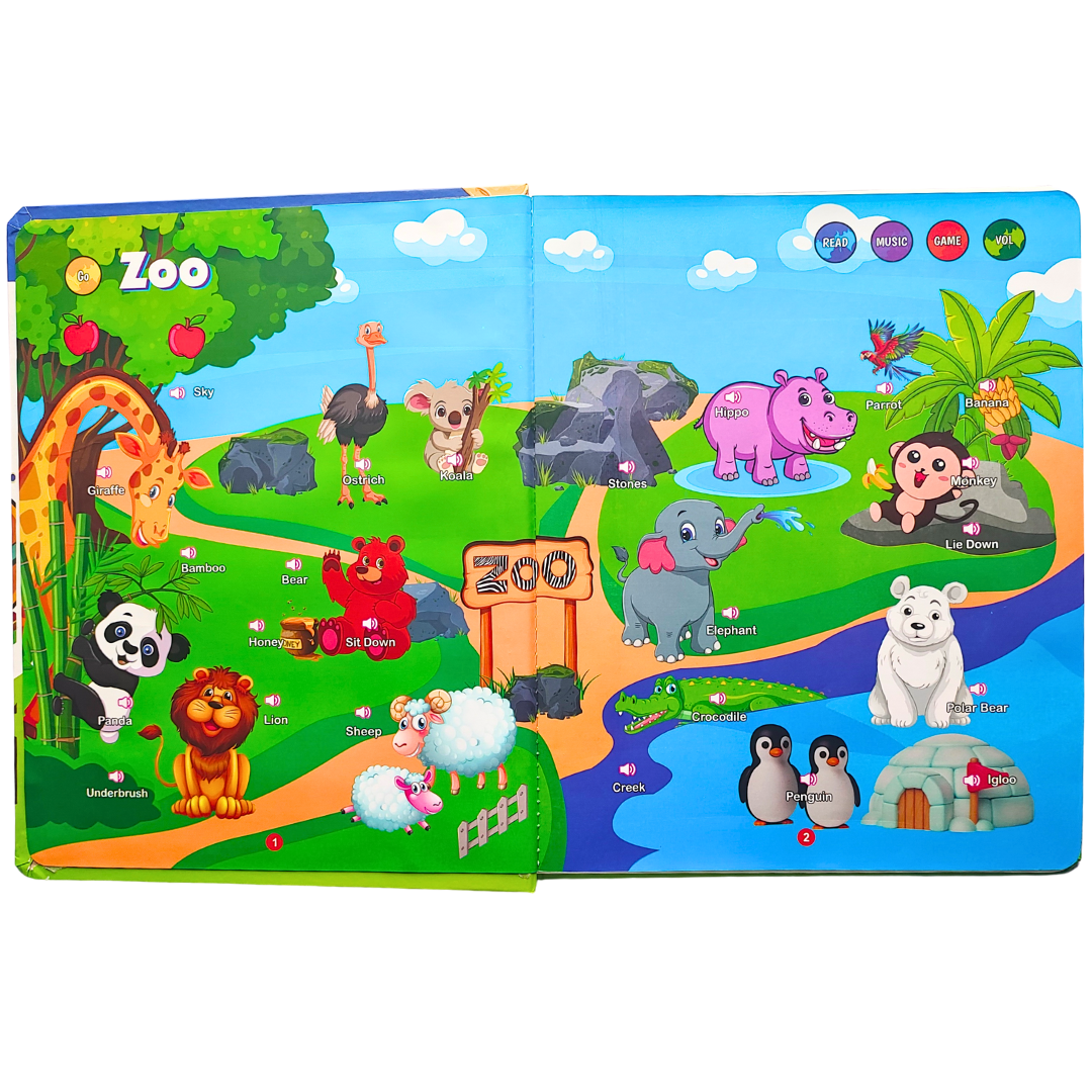 Introduce your child (ages 2+) to English with our vibrant and interactive Learn & Play Book! Featuring stunning illustrations of animals, seasons, fruits, vegetables, body parts, and home objects, this book makes learning fun and engaging. Simply press a button to hear the pronunciation of each word, and then play the exciting “Where is it?” game to reinforce recognition skills. This battery-operated book blends traditional learning with modern interactivity for an enjoyable educational adventure.